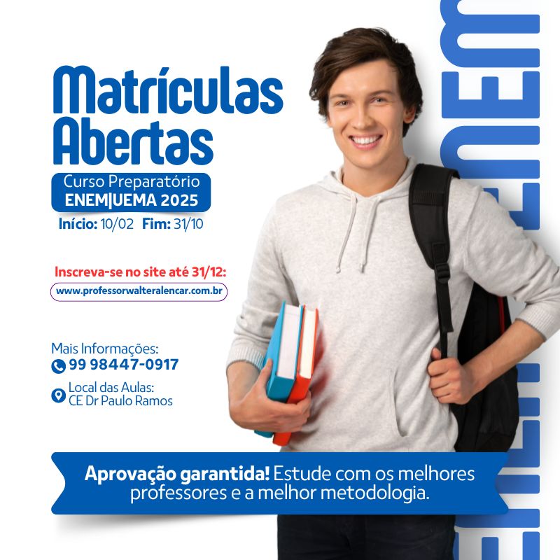 Localização estratégica: As aulas serão realizadas no renomado Centro de Ensino Dr Paulo Ramos, em São João dos Patos/MA, proporcionando um ambiente de estudo confortável e seguro.